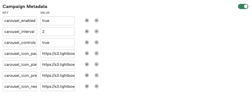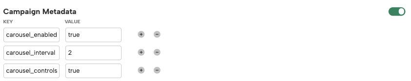 You can enable interactive UI controls for your carousel (Next, Previous, Play, Pause) to help users navigate through the different pages in the campaign.