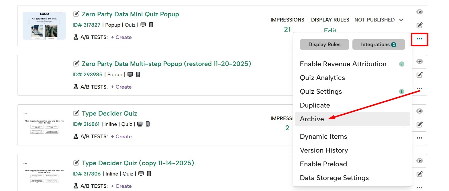 Find the campaign in your list, click the three-dot (more) menu, and select Archive.