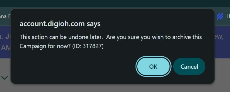 If your Digioh account contains a large number of campaigns, archiving helps keep your campaign list organized. Archiving removes campaigns you’re not currently using from your main list without permanently deleting them. Digioh supports both single and bulk campaign archiving.