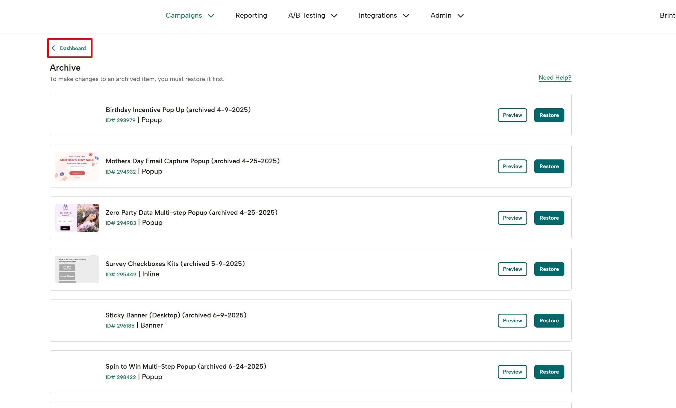 How to Restore an Archived Campaign: