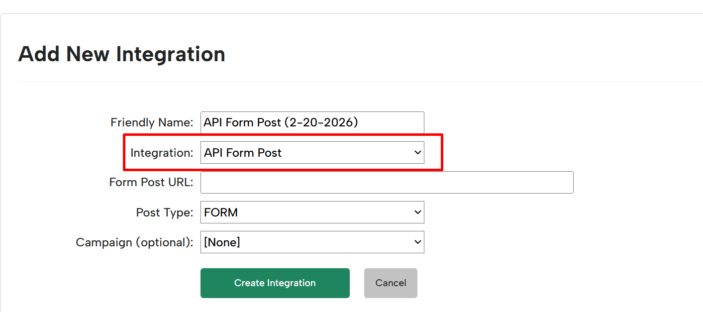 3: Select API Form Post in Integration options