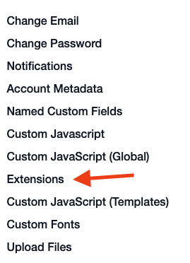 In your account, navigate to the menu under your account name at the top right of the page. Here, select “Extensions”.